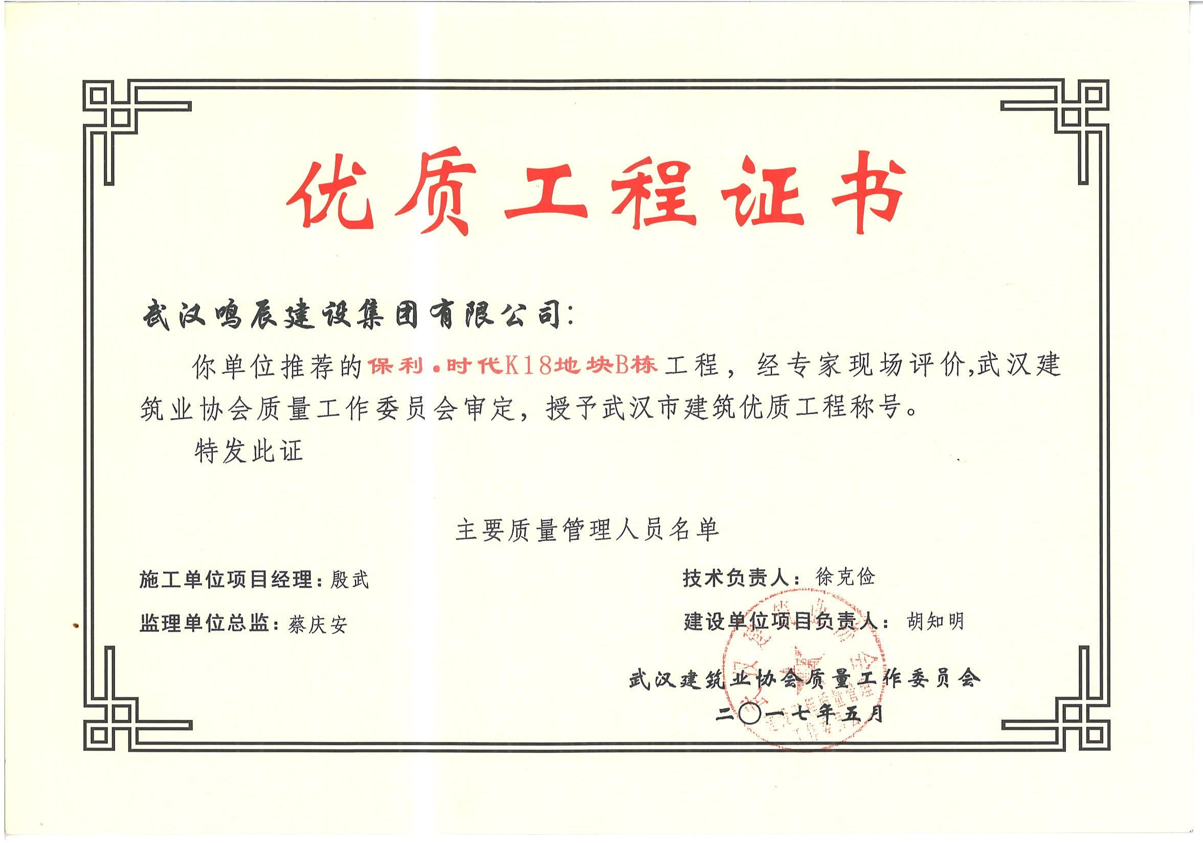 保利時代K18地塊工程B棟榮獲武漢市優(yōu)質(zhì)工程榮譽(yù)