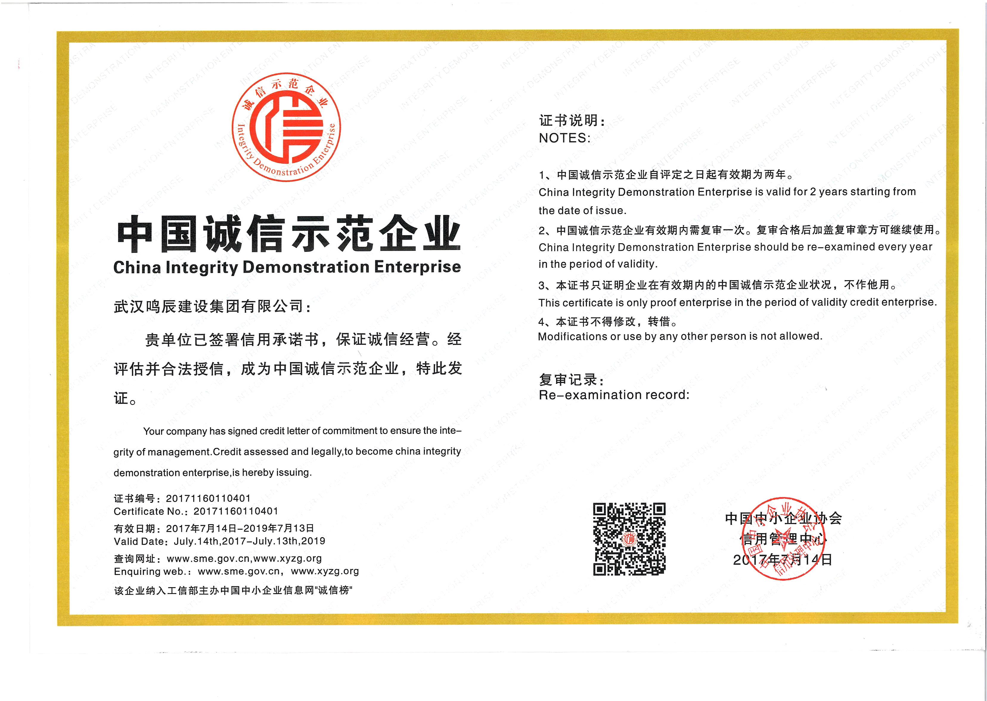 中國誠信示范企業(yè)