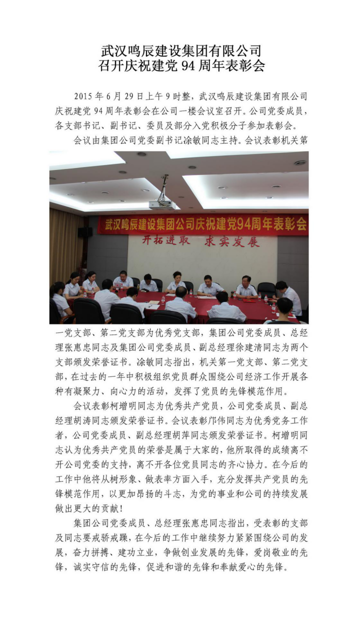 武漢鳴辰建設(shè)集團(tuán)有限公司召開慶祝建黨94周年表彰會