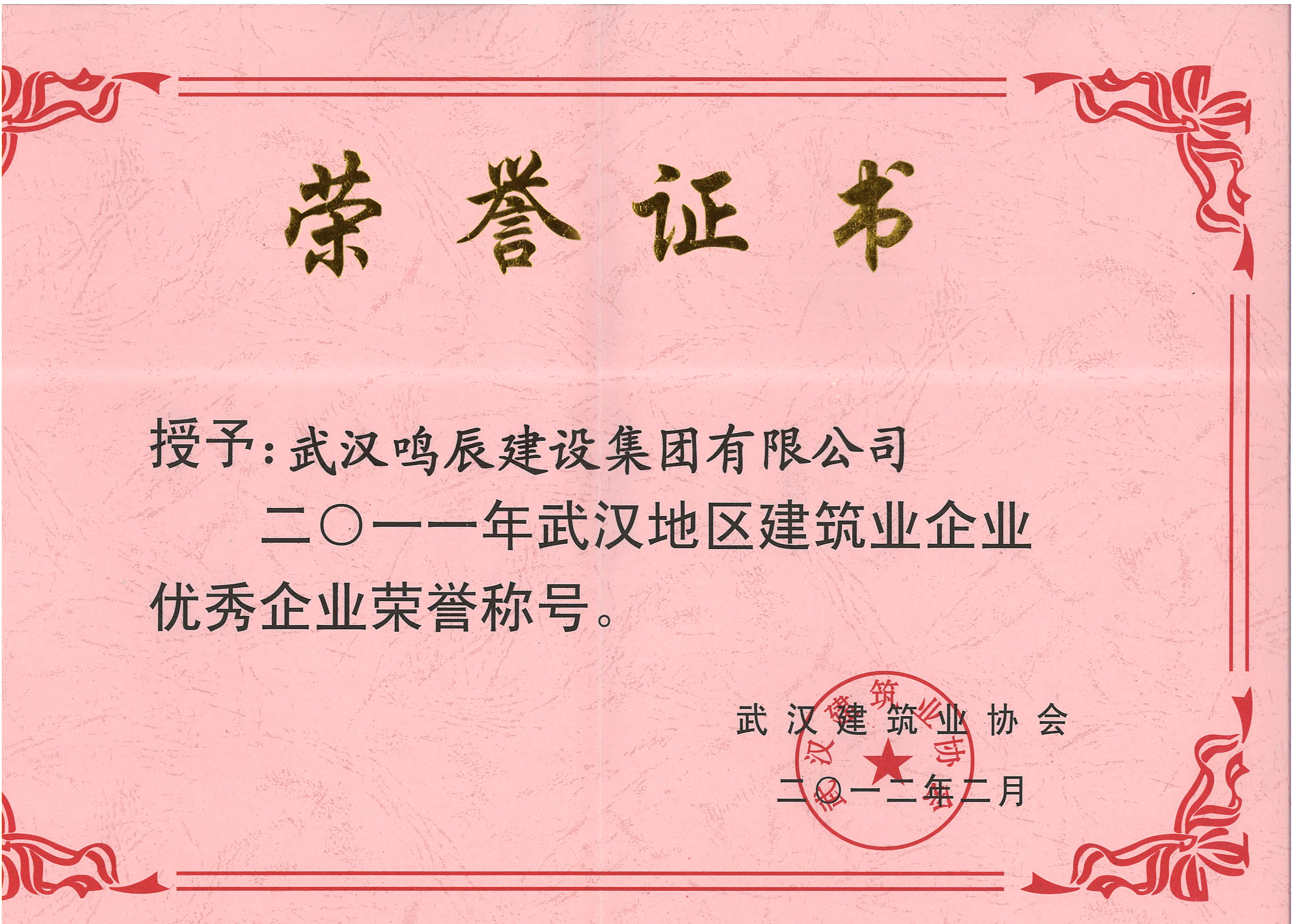 二〇一二年度武漢地區(qū)建筑業(yè)企業(yè)優(yōu)秀企業(yè)