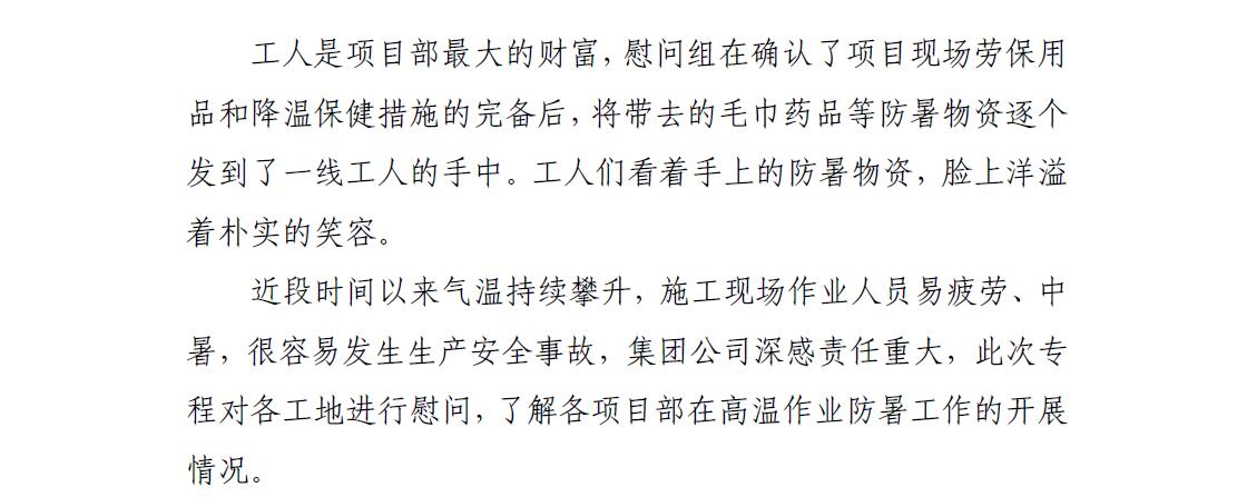 心系項目一線,情系職工送清涼