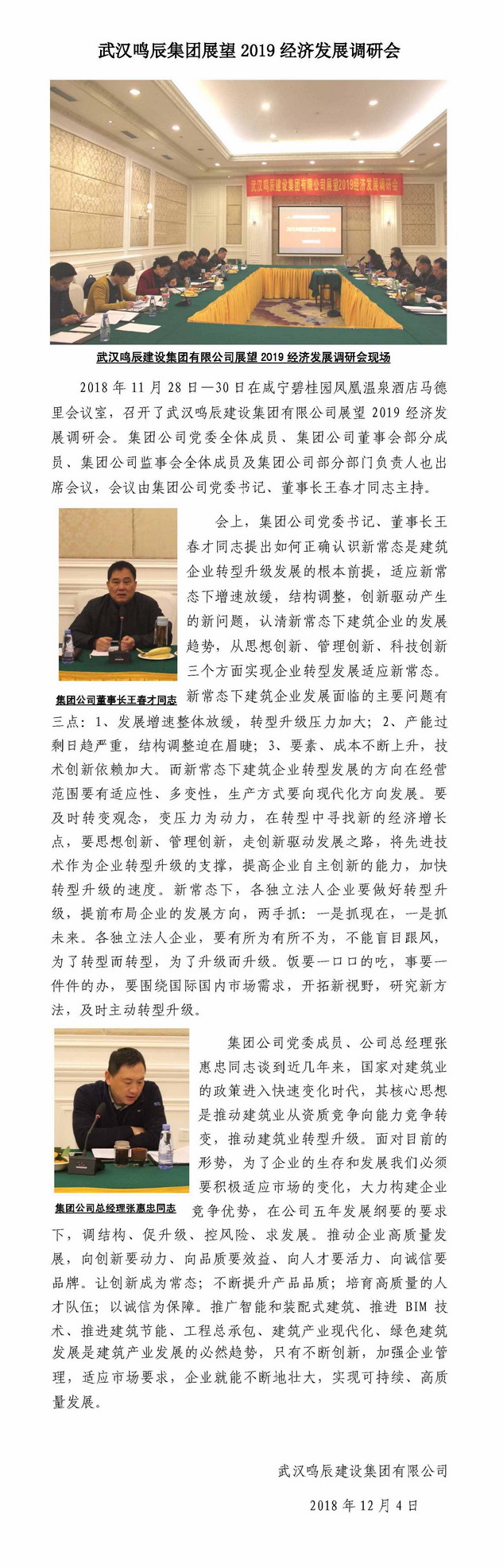 武漢鳴辰集團(tuán)展望2019經(jīng)濟(jì)發(fā)展調(diào)研會