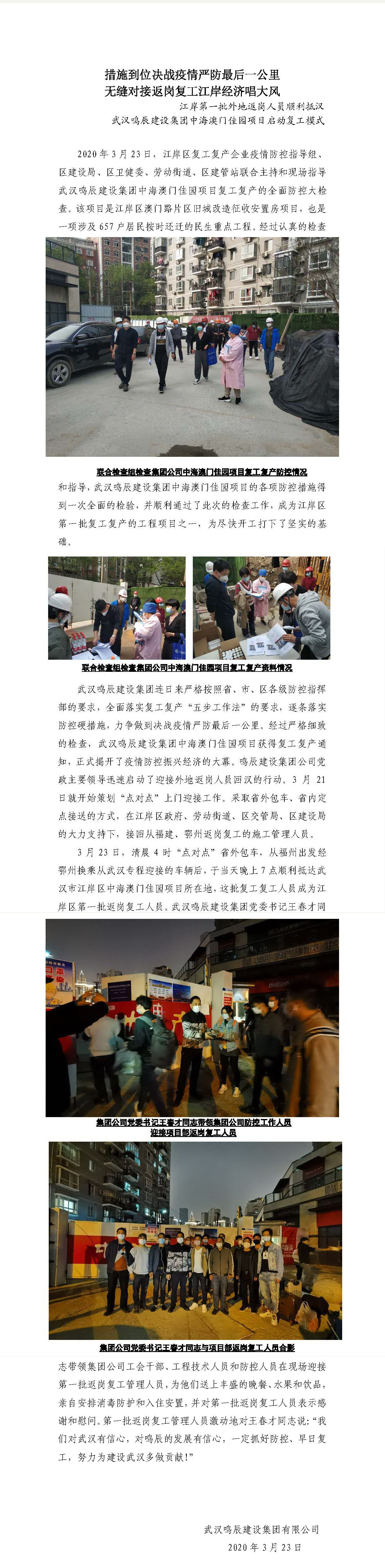 武漢鳴辰建設(shè)集團中海澳門佳園項目迎來第一批返崗復(fù)工人員