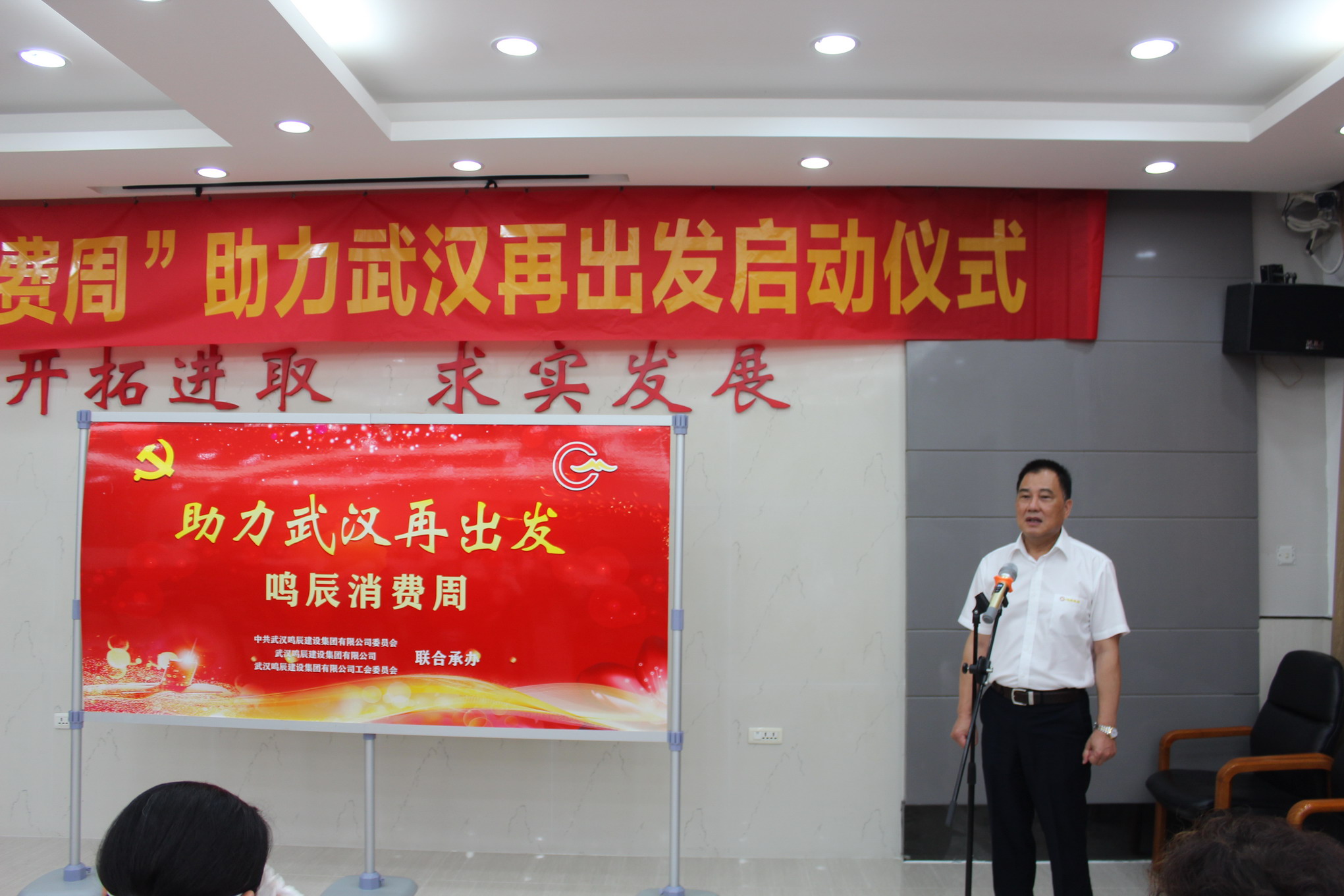 6月15日上午,在公司一樓會議隆重舉行了“鳴辰消費周,助力武漢再出發(fā)”活動揭牌儀式。區(qū)總工會鐘副主席,集團公司領導班子成員,項目部負責人出席活動?;顒佑晒究偨浝韽埢葜彝局鞒郑军h委書記、董事長王春才同志與江岸區(qū)總工會鐘副主席為活動揭牌。據悉,這是武漢第一家企業(yè)鼓勵員工消費,以消費助力武漢經濟?!傍Q辰消費周”活動,倡導“快樂消費,健康生活”,員工消費滿1000元,企業(yè)補貼300元,讓員工分享發(fā)展紅利,促進市場繁榮。