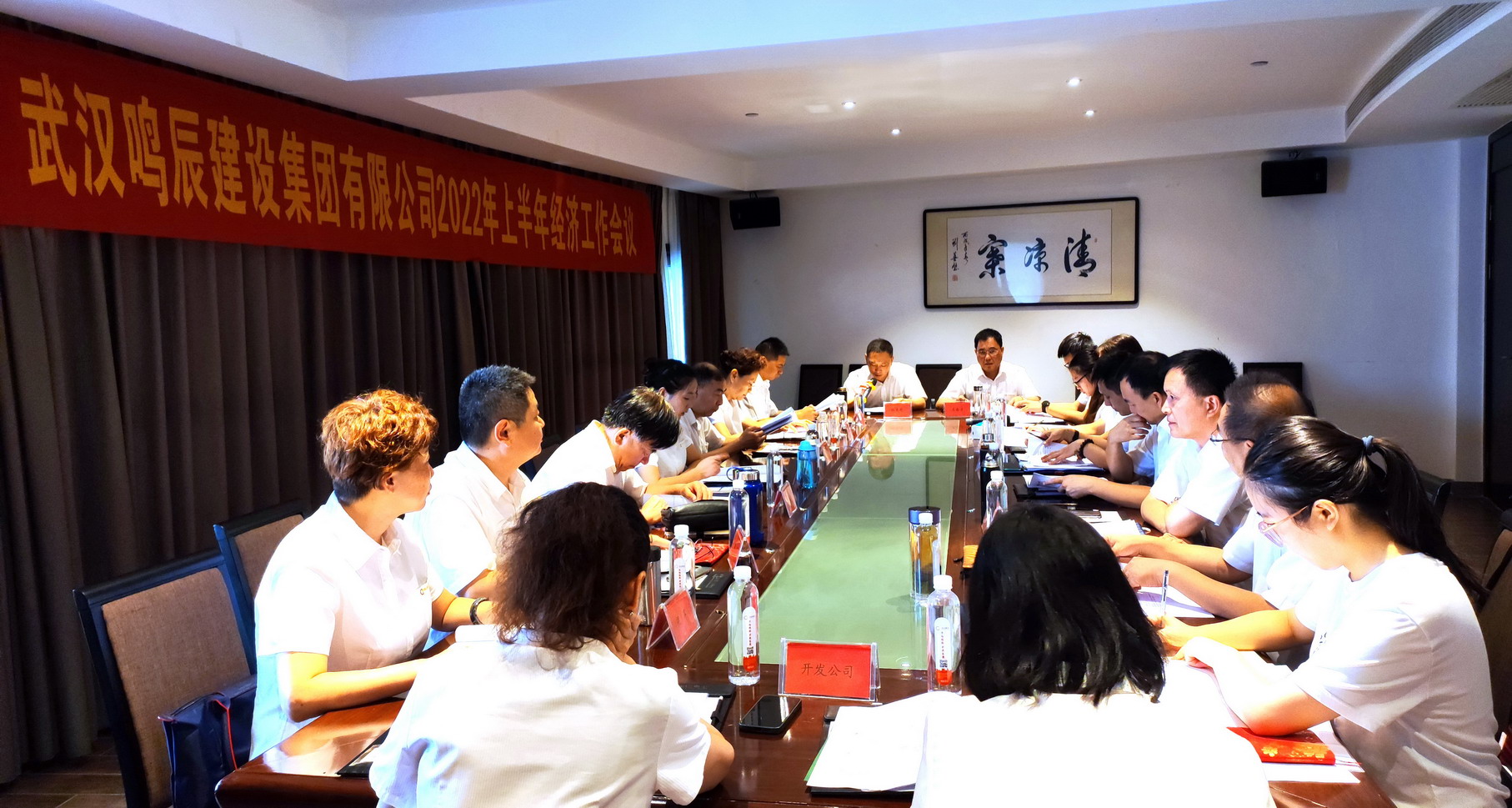 2022年7月17日上午8點,武漢鳴辰建設集團有限公司2022年上半年經濟工作會議在清涼寨度假酒店會議室召開。會議由集團公司黨委書記、董事長王春才同志主持。公司總經理張惠忠同志及領導班子全體成員和集團公司各部門部長、副部長,集團公司所屬各獨立法人單位經理、副經理參加會議。會議對上半年工作進行了總結,并提出了下半年的工作思路。