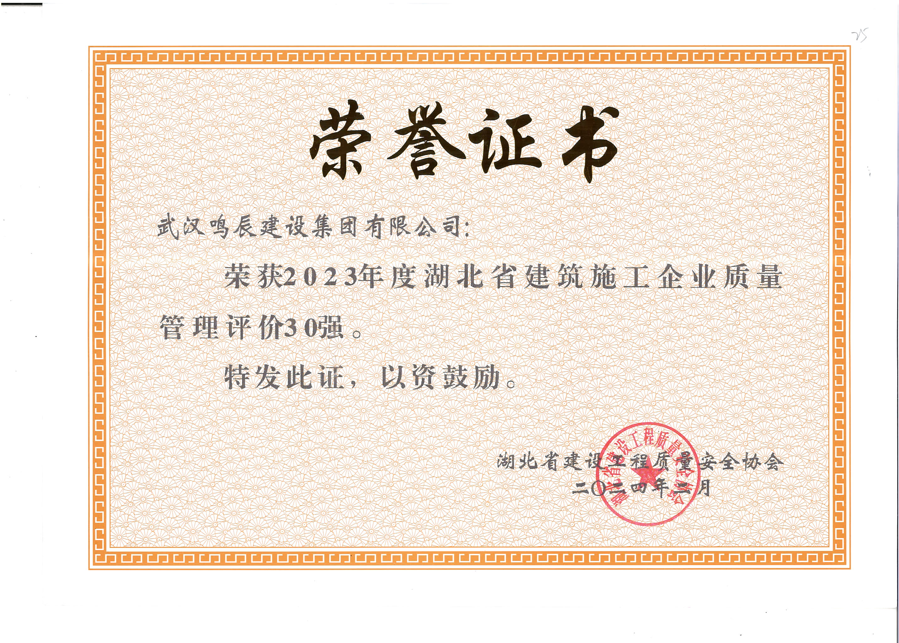 2023年度湖北省建筑施工企業(yè)質(zhì)量管理評(píng)價(jià) 30強(qiáng)