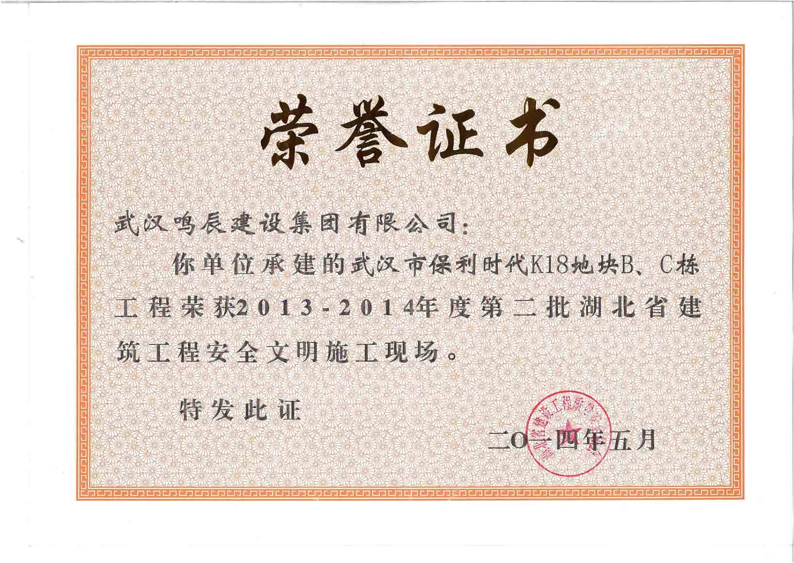 2013-2014年度第二批湖北省建筑工程安全文明施工現(xiàn)場(chǎng)