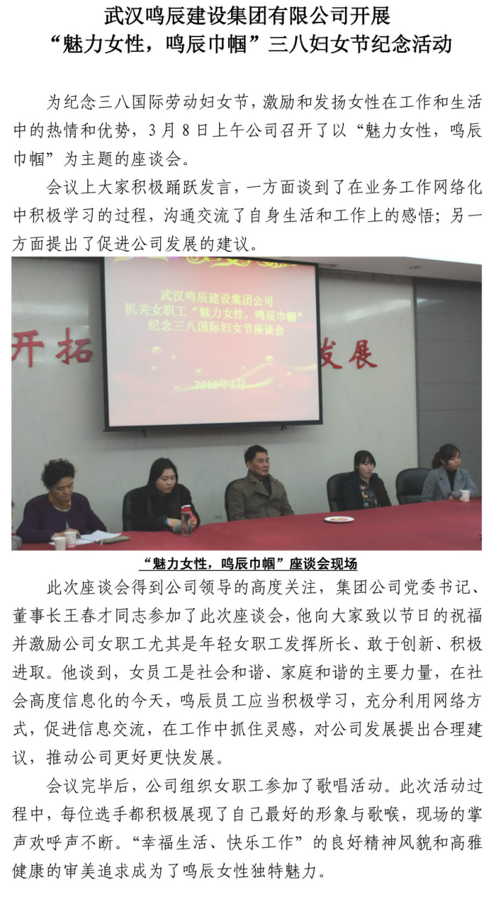 武漢鳴辰建設(shè)集團(tuán)有限公司開(kāi)展“魅力女性,鳴辰巾幗”三八婦女節(jié)紀(jì)念活動(dòng)