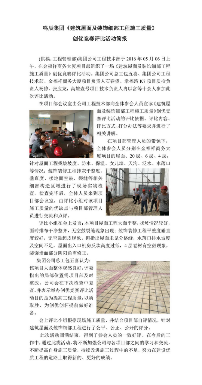 鳴辰集團(tuán)《建筑屋面及裝飾細(xì)部工程施工質(zhì)量》創(chuàng)優(yōu)競賽評比活動簡報
