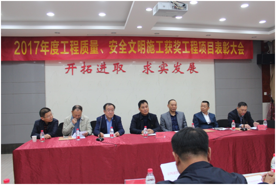 集團(tuán)公司副總經(jīng)理胡萍同志宣講了《關(guān)于表彰2017年度獲獎工程項(xiàng)目的決定》決定對集團(tuán)公司2017年度榮獲的7個工程質(zhì)量及5個安全文明施工工程項(xiàng)目進(jìn)行了表彰,并由武漢市建筑業(yè)協(xié)會副會長兼秘書長李淼磊、中杰投資公司董事長池建國、勞動街辦事處黃主任及鳴辰集團(tuán)公司董事長王春才為保利時代K18地塊A、B棟及地下室工程、高雄壹號工程、幸福灣二期工程、保利清能西海岸北區(qū)五期工程、祥運(yùn)鞋業(yè)生產(chǎn)車間工程等受表彰的項(xiàng)目進(jìn)行了頒獎。