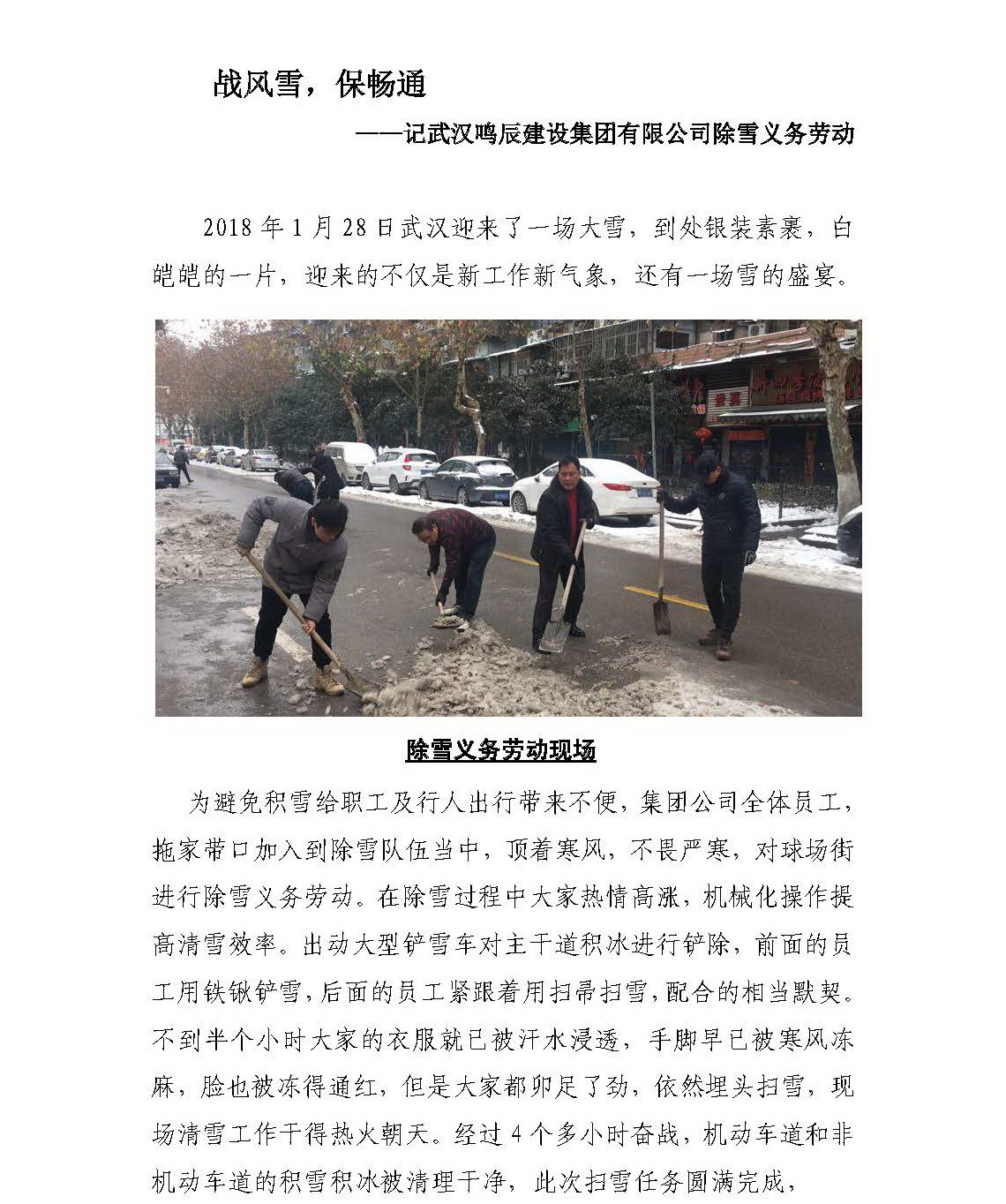 戰(zhàn)風(fēng)雪,保暢通 ——記武漢鳴辰建設(shè)集團(tuán)有限公司除雪義務(wù)勞動(dòng)