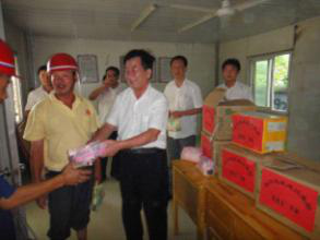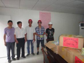 炎熱的八月烈日當(dāng)頭,集團(tuán)公司領(lǐng)導(dǎo)帶隊(duì),公司各部門參與,看望堅(jiān)持在施工一線的農(nóng)民工兄弟們,為正在高溫作業(yè)的他們送上了防暑降溫用品。至此,鳴辰集團(tuán)“2011年送清涼”活動(dòng)正式拉開序幕。