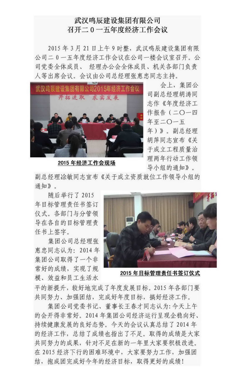 武漢鳴辰建設集團召開二〇一五年度經(jīng)濟工作會議