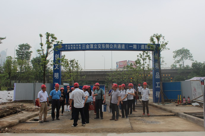 調(diào)研小組一行早上9點在我公司一樓會議室觀看了我公司宣傳片,對我公司做了簡單了解。隨后,公司領(lǐng)導陪同政協(xié)委員到公司承接的幸福村K5項目及我公司市政公司承接的三金潭項目工地現(xiàn)場檢查指導工作。